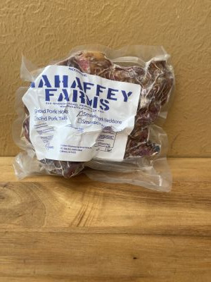 These pigs are raised and rotated on pasture and fed free choice, locally milled, non-medicated conventional feed. No hormones, steroids, or antibiotics. Truly pasture raised pork with high flavor profile.